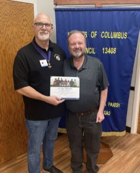 Supporting Terry every step of the way is his wife, Marilyn, who works tirelessly behind the scenes with encouragement, guidance, and service. As a member of the Ladies Auxiliary, Marilyn supports Terry and our Knights’ activities, and she also serves the wider community through meal distribution to the needy at Metrocrest. Together, Terry and Marilyn truly exemplify the values of faith, service, and dedication to family and community. They remind us that strong Knights are supported by strong families.
