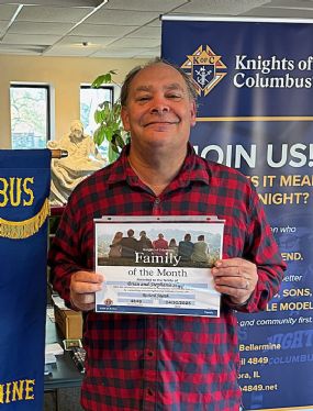 Dan has been very active in March working the Fish Fry and participating in the Knights on Bridges for Life on March 19. His wife Heather is an active parishioner and is a lector. His daughters, Caroline and Kathryn are altar servers and usually serve at 11AM Sunday Mass. |