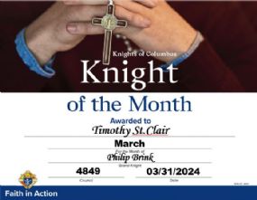 I would like to nominate Paul Fleming for September Knight of the month. For his enthusiasm, dedication, and most of all for his commitment to prayer. For the success of the ID drive. |