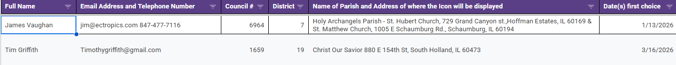 Please take notice that the Knights of Columbus Sacred Heart Icon is available for you to schedule at your Church. Attached is the Icons' current schedule.